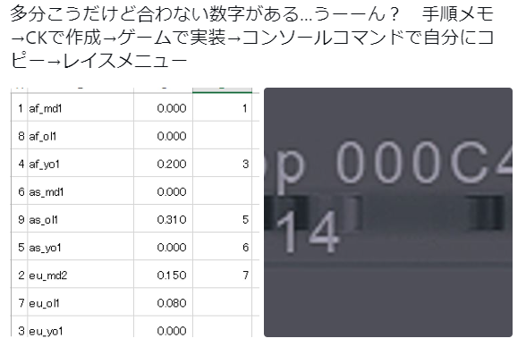 CharGenMenuだと数値が出るのでスクショをみながらそれっぽい場所にあてはめてみました。