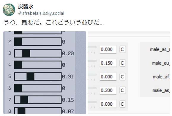 BodyMorph欄も気になるのですが対応する数値がみつけられず。