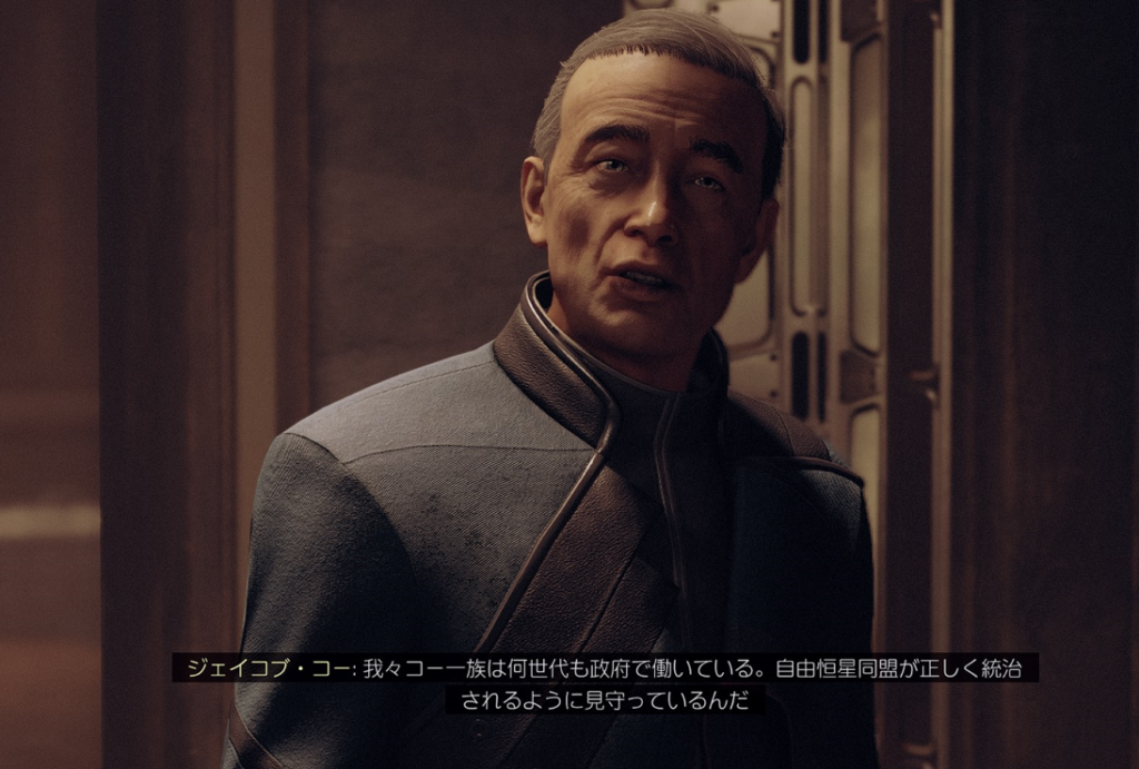自由奔放な冒険家のサムとちがって、ジェイコブはコー家の人間として自由恒星同盟の運営に深く関わっている模様。