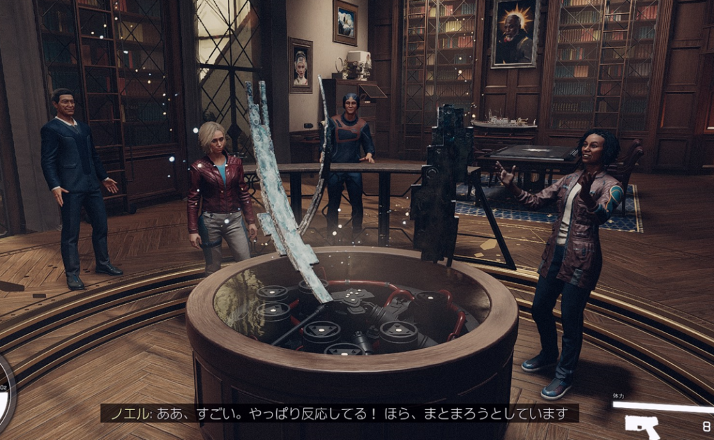 突然バレットのかわりに謎の金属をもって現れた主人公に不信感だだもれの一同ですが、その金属の検証で一気にテンションが上ります。
