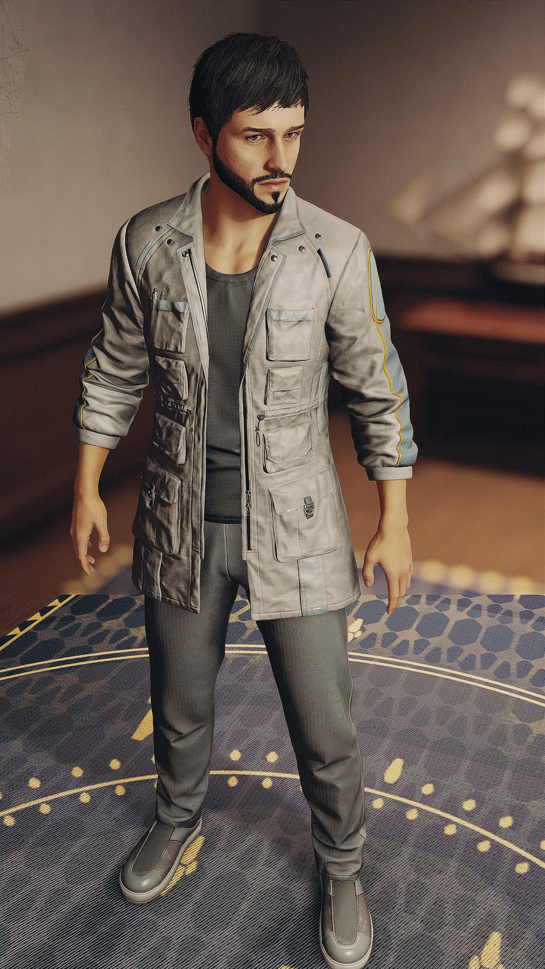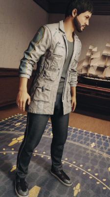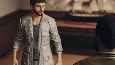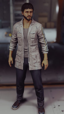 Skyrimではおなじみのリカラーですが、StarfieldはまだCKがないので、追加するのは敷居が高い…ということで、男女別のテクスチャファイルになっているノエルの服を、白がイメージカラーの教授用にリカラーしてみました。